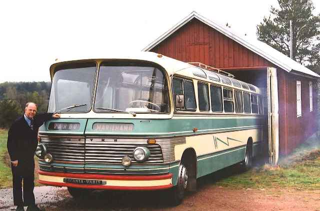 fotograferad år 2001 bredvid Ålands äldsta buss, Vårdö Busstrafiks Scania Vabis B55, Kutter 5 från år 1962. |