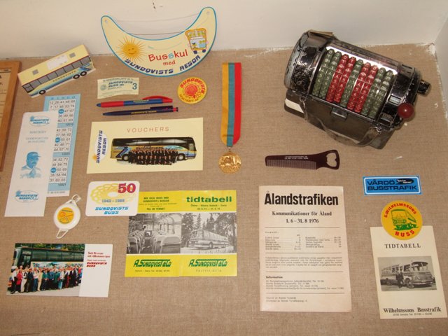 Ålandstrafikens väntsal i Mariehamn fanns en busshistorisk utställning |