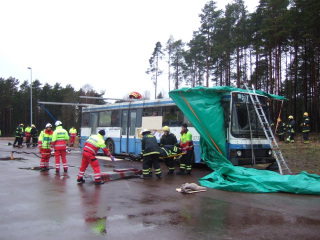 ÖVADE BUSSKRASCH 14 april 2012 i Jomala TKL577 - HRJ-577 Sisu BK-160D, Ajokki 8000 Bussen var i trafik hos Tampereen kaupungin liikennelaitos (Trafikverket i Tammerfors) 19.05.1983 - 09.12.1995. Sedan bussen tagits ur trafik i Tammerfors inköptes bussen till Åland. Avsikten var att använda bussen som "missionsbuss" och "exodus"-buss. Bussen kom dock inte att användas för dessa ändamål, utan var närmast lager, först uppställd i Gölby, sedan i Gottby och senast i Överby. Sedan början av 2000-talet har bussen används av räddningsverken och bussbolagen på Åland som objekt vid brand- och räddningsövningar. Foto: Bosse Ahlnäs, Jomala, 14.04.2012 |