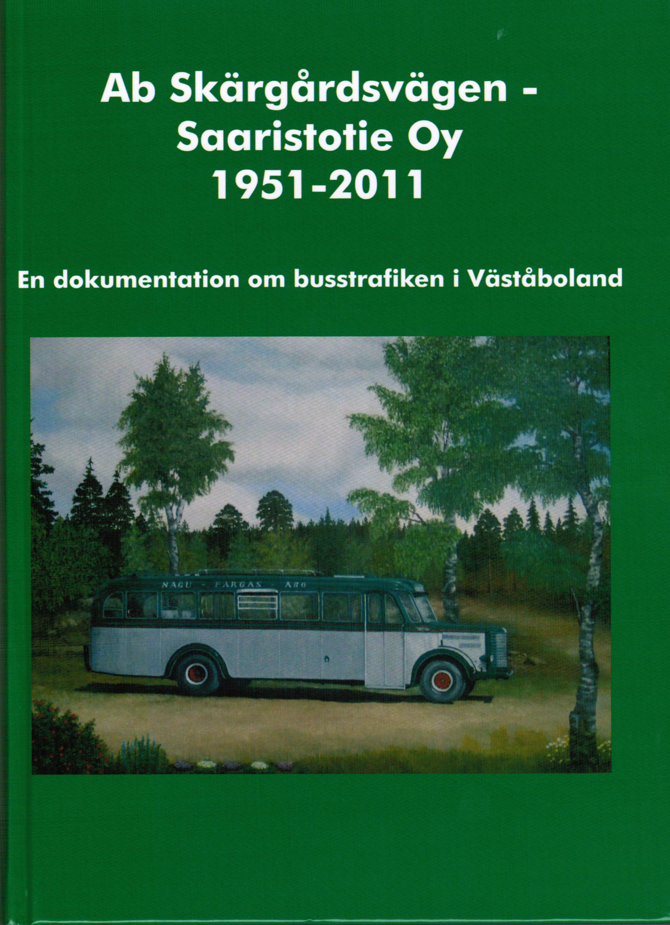 busshistoria 80 år busstrafik på Åland - en dokumentation av Bo Ahlnäs Pärmbild: Vårdö Busstrafiks Scania-Vabis B55, ÅL 2660 från år 1962 har just kört genom tunneln vid Färjsundet och skall köra ut på Färjsundsbron i augusti 1978. Tunneln som byggdes år 1958 är Ålands längsta landsvägstunnel, Foto: Timo-Pekka Lange |