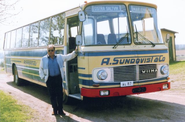 ÅL 87, 1971, A Sundqvist & Co Ägare under åren 1995-2009 Jan Bergström, Carl-Johan Häggblom och Kim Pihl. Ägare sedan 14 november 2009 Tom Ylander, Saltvik som registrerat bussen med register nummer ÅL 587 och döpt bussen till "Helga" Ny ägare sedan 18 oktober 2014 Brage Stenberg, Bussen medverkade i Finlands Svenska Televisions film ”Det finns flera sätt att simma”, som inspelades år 1993. Foto: ÅL 87,Sirkka-Lisa Westergård, 7.1987 Foto: ÅL 587, Tom Ylander, Bartsgårda, Saltvik, 2010 Foto: ÅL 587, Foto: Tom Ylander, Bartsgårda, Saltvik, 14.11.2009 |