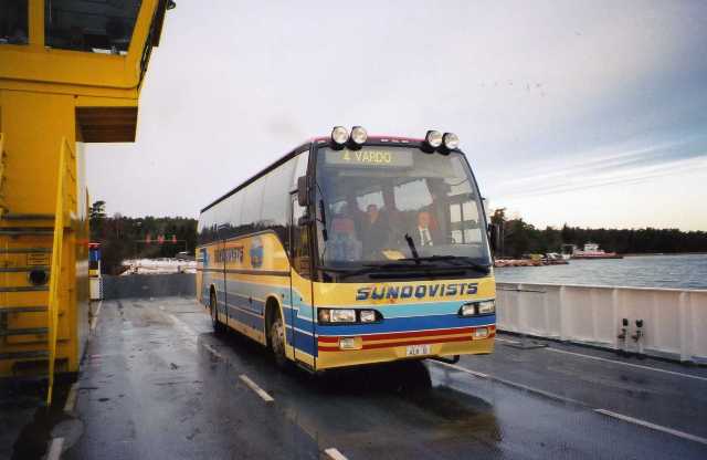 2000, Sundqvist Buss I trafik på Åland 1999-2011 Buissen såldes den 15 november 2011 till Volvo Finland Ab, som sålt bussen till Matkapalvelu Into Alen i Viiala, som registrerat bussen den 20 april 2012 med register nummer VSZ-740. Sundqvist färger är bibehållna. Besiktigad t.o.m. 2.5.2022 Foto: 2000, Bosse Ahlnäs, Andersudde Foto: VSZ-740, Lars-Göran Lassander Foto: VSZ-740, Bosse Ahlnäs, Pärnu, Estland, 2.10.2012 |